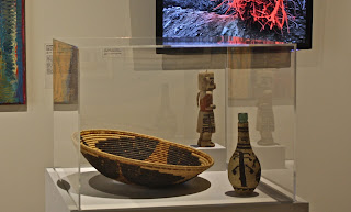 জলে প্রতিফলন আদি আমেরিকান শিল্প ও নিদর্শন সমৃদ্ধ। পাম স্প্রিংস জাদুঘর আমেরিকান পশ্চিম এবং এর সংস্কৃতির সংগ্রহে সমৃদ্ধ হওয়ায় এটি প্রত্যাশিত। [লেখকের ইনস্টলেশন ছবি।] স্থানীয় শিল্পের বেশ কয়েকটি উদাহরণে, আমি মরুভূমির জীবনের স্থায়ী তথ্যের গ্রহণযোগ্যতা দেখেছি যেখানে উচ্চাকাঙ্ক্ষী প্রযুক্তির চক্রের অভাব ছিল এবং প্রকৃতিকে পরিবর্তন ও নিয়ন্ত্রণের ইউরোকেন্দ্রিক প্রচেষ্টার ফলে পরিণামে ধ্বংস হয়ে গিয়েছিল।