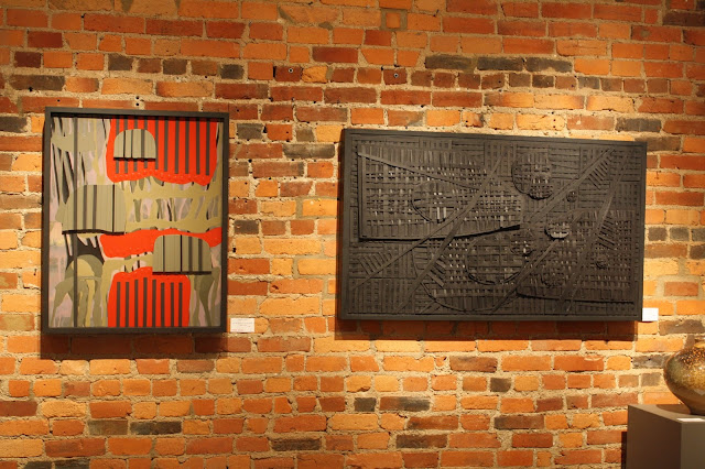 Die ganze Arbeit an dieser Show gleichzeitig vermittelt gute Laune und beruhigende Stabilität. Die durchsetzungsfähige Farbe kontrastiert fröhlich; Die Konstruktion ist tadellos diszipliniert. Lidgus verzichtet auf Künstlermaterialien und greift auf Pappe, Zimmermannsnägel, Schleifpapier, Anstrichfarben und andere alltägliche Schätze zurück. Seine Kombination aus Farbauswahl, sorgfältiger Verarbeitung und biomorphen Formen erinnert mich an die Kunst der Mitte des 20. Jahrhunderts. Dies erklärt möglicherweise den Hauch von Klassizismus, den ich in diesem wunderschönen Werk stark verspüre.